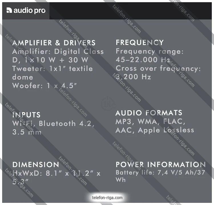 | Сабвуфера | 30 Вт |