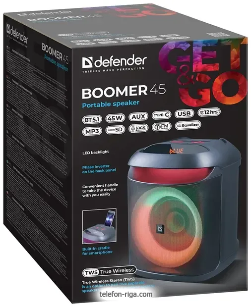 Портативная акустика Defender Boomer 45 - купить в Риге, Латвия.Бренд: Defender Зимняя скидка 2025 г.: 15%, экономия: 7 €