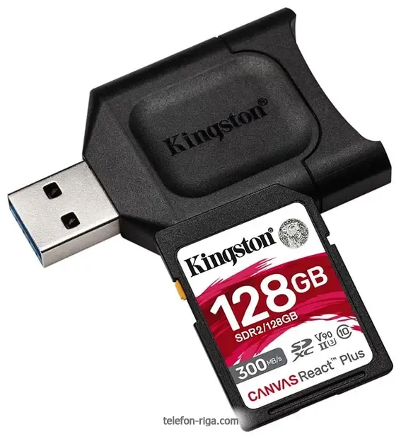 Карта памяти Kingston Canvas React Plus SDXC 128GB (с кардридером) - купить в Риге, Латвия.Бренд: Kingston Зимняя скидка 2025 г.: 15%, экономия: 14 €