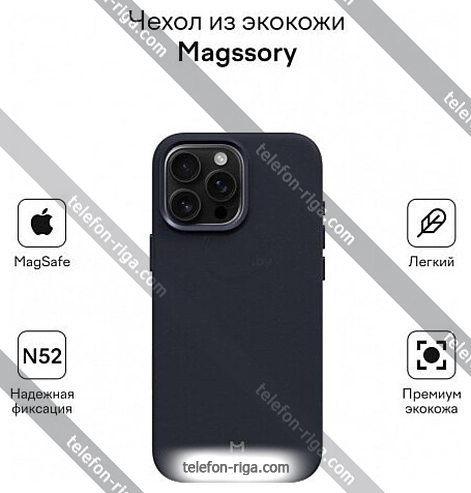 Чехол для телефона Magssory Eco Leather Case Blue для iPhone 16 Pro Max CLT029b, РигаБренд: Magssory Зимняя скидка 2025 г.: 15%, экономия: 4 €