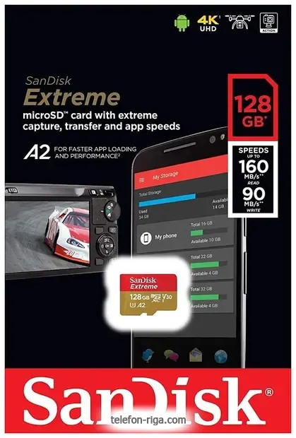 Карта памяти SanDisk Extreme microSDXC SDSQXA1-128G-GN6MN 128GB - купить в Риге, Латвия.Бренд: SanDisk Зимняя скидка 2026 г.: 10%, экономия: 3 €