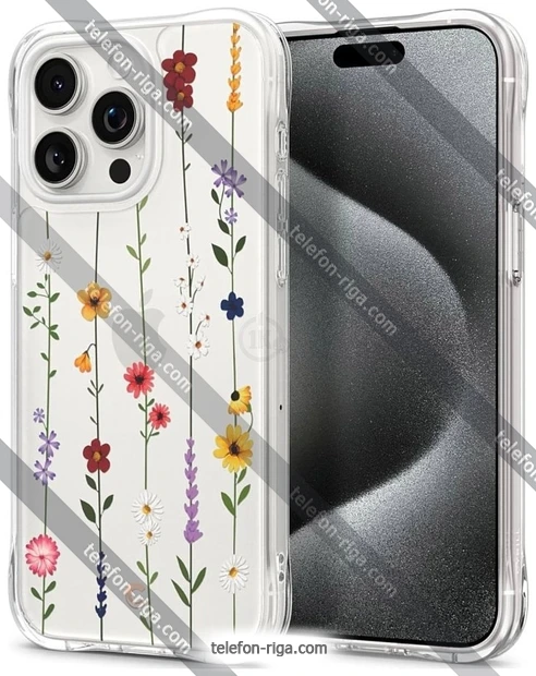 Чехол для телефона Spigen Cyrill Cecile для iPhone 15 Pro Max ACS06625 (прозрачный/цветы) - купить в Риге, Латвия.Бренд: Spigen Зимняя скидка 2025 г.: 15%, экономия: 3 €